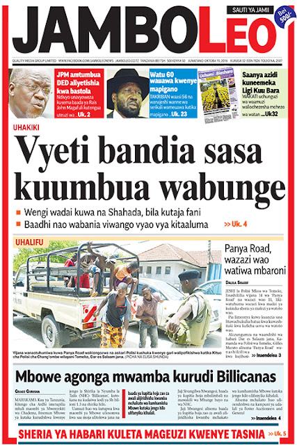 Habari zilizoandikwa katika Magazeti ya leo Octoba 19.