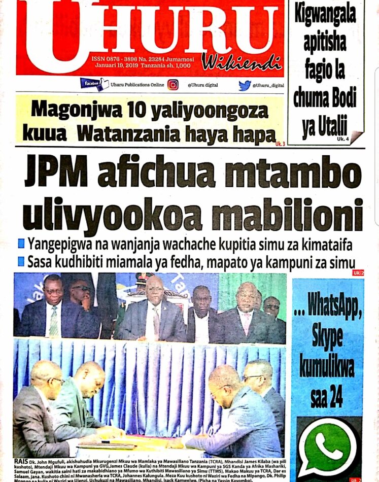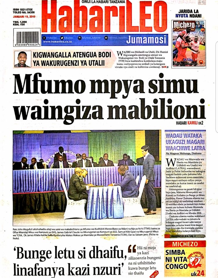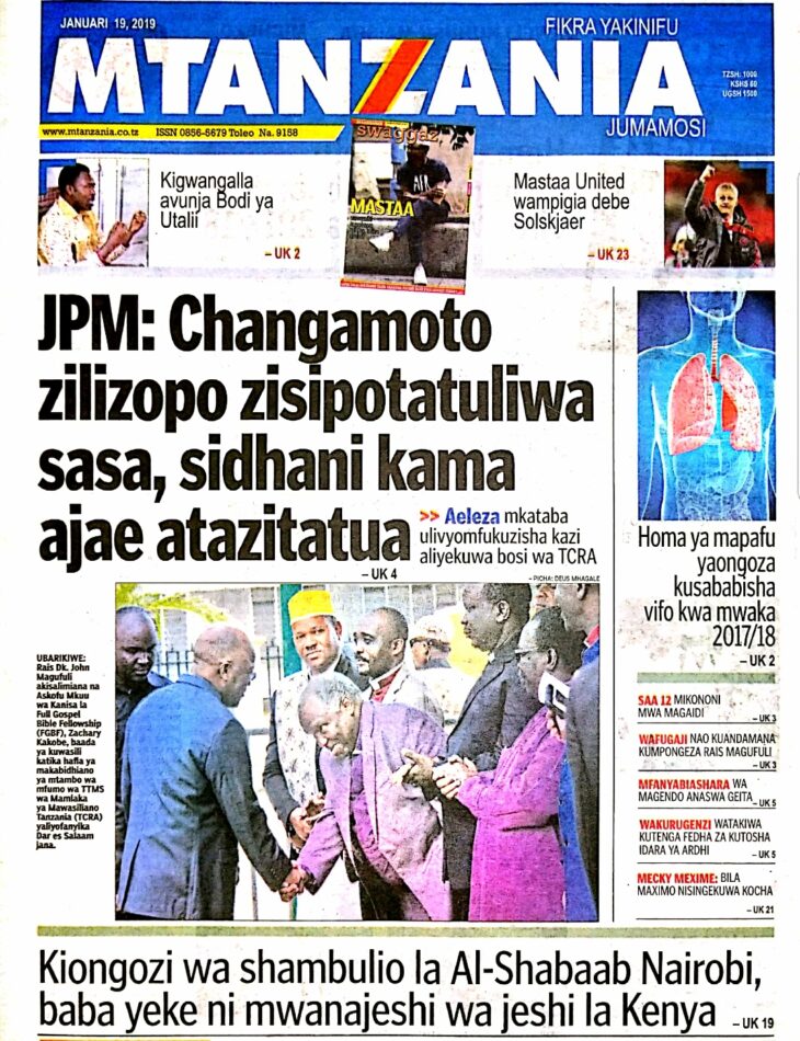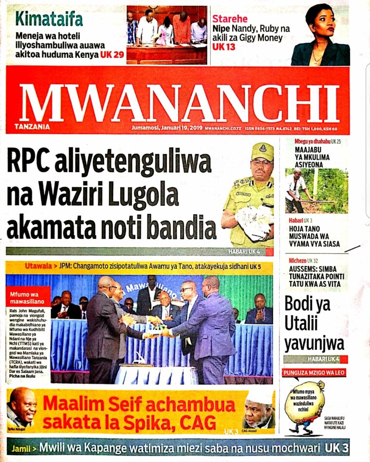 Habari zilizoandikwa katika Magazeti ya leo Januari 19, 2019